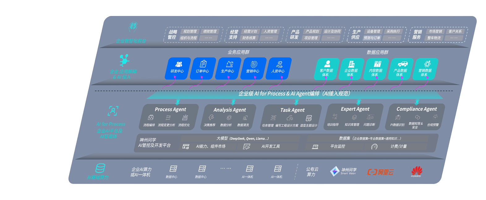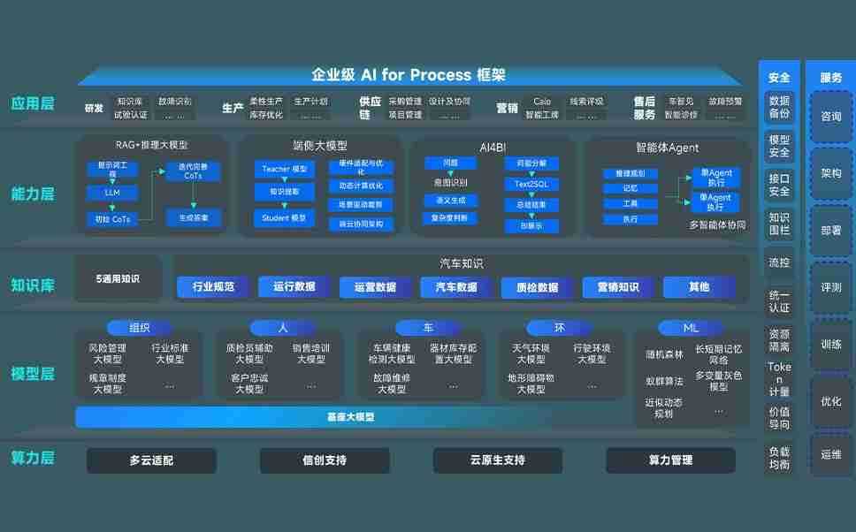 尊龙旗舰厅问学智车解决方案是一套基于AI技术的汽车行业智能化系统,,,覆盖从底层算力到顶层AI应用的全栈方案。。。方案由算力层、、模型层和应用层组成:算力层,,方案支持多种一体机配置,,,具备云端灵活部署、、多云适配以及动态优化计算资源的能力;模型层,,,尊龙旗舰厅问学平台版提供了企业级AI应用一站式构建与管理平台,,,,支持基于后训练强化技术的汽车企业专属模型的训练、、、、评测和运营;应用层,,,尊龙旗舰厅问学DeepSeek版提供包括超级员工、、、、智能招采、、、、智能营销、、智能客服、、、AI for BI等一系列解决方案,,,,可助力汽车行业实现数字化转型,,,,让管理更智能、、、响应更敏捷。。。